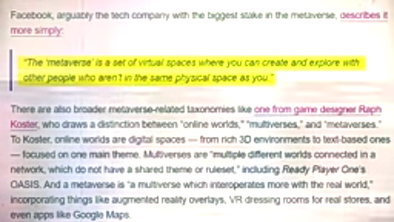 Facebook is already making tools available for developers to use and connect on their platforms. These platforms will connect various physical real world locations via GPS with augmented 3D virtual reality to enable virtual tours and scavenger hunts. Although the actual hardware technology is far ahead in the future. Digital users will be able to create and customize their avatars for work and play which will be like profile pics as in Facebook but rather more dynamic living 3D physical representations of you. You will be able to crop, filter, color, mute and drag profiles around digital space across slot databases. Instagram like but in 3D tech. The avatars will wear virtual clothes, eat virtual food, live in virtual property living residential spaces and use virtual crypto currencies or other forms of digital money (Fedcoin). Read the blog: “Bitcoin, biggest fear of governments, the new monetary policy“. The tech tools include Mark Zuckerberg’s VR headset gear Oculus and its computer graphics chip generator Nvidia with its Omniverse engine platform to power some of Metaverse’s underlying frameworks. Unity Software-developer also wants a piece of the pie as does Roblox Corp, Epic games Inc and Microsoft. instagram.com/p/CVqSKgoAPDB/