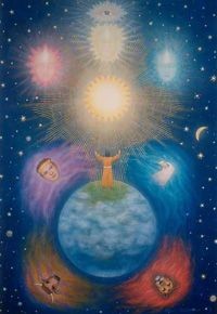 The Christ multidimensional art is a living-breathing collage made up of bitrons, digitrons, cybersitrons, PCMs (Particum strands), PKAs (Partika flash-line SE-da sequences) and PKI (Partiki phase-locking Ecka-Veca Grids). It is a composition of audio-visual elements adopted from different backgrounds, themes, virtual frameworks and inter-time conceptual ideals such as: landscapes, pixiscapes, dreamscapes, astro-technoscapes and theurgistic cyberscapes for instance. It is a literal jungle of timeline masks and geo-philosphical embodiments melded into one entity I.e. the supernatural Christ figure imprint. For example, Christ has the following reincarnational personas from the following eras and environments: Horus (5000 years ago, Egypt), Mithra (3.200 years ago, Persia), Krishna (2.900 B.C. India), Dionysus (2.500 B.C. Greece) and Jesus-Yeshua (2000 A.D. Nazareth).